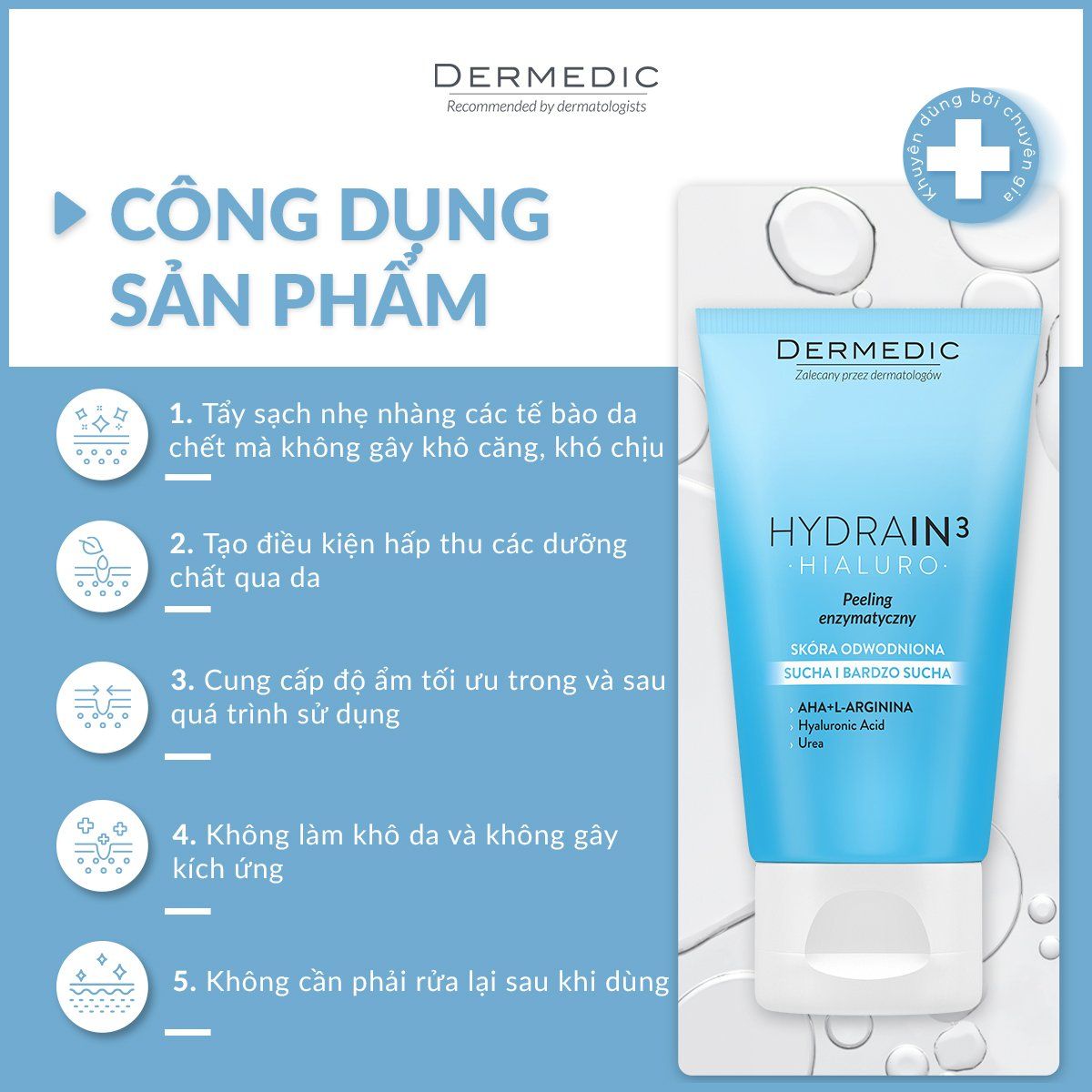 Tẩy tế bào chết nhẹ nhàng: Gel tẩy tế bào chết HYDRAIN3 HIALURO sử dụng công nghệ enzyme và axit AHA để loại bỏ các tế bào da chết, giúp da mịn màng và tươi sáng mà không cần sử dụng máy móc.