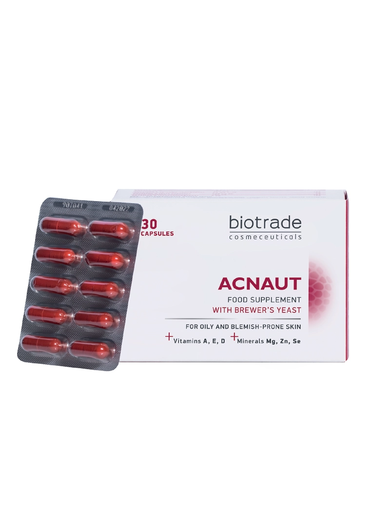 Acnaut Food Supplement là thực phẩm chức năng dành cho mọi loại da, đặc biệt là cho da dầu mụn, chứa chiết xuất men bia, vitamin A,E,D và các khoáng chất có lợi cho sức khỏe cơ thể như Magnesium, kẽm và Selenium. Sự kết hợp hoàn hảo này mang lại cực kỳ nhiều lợi ích cho không chỉ làn da, mà còn cho tóc và cả móng tay.